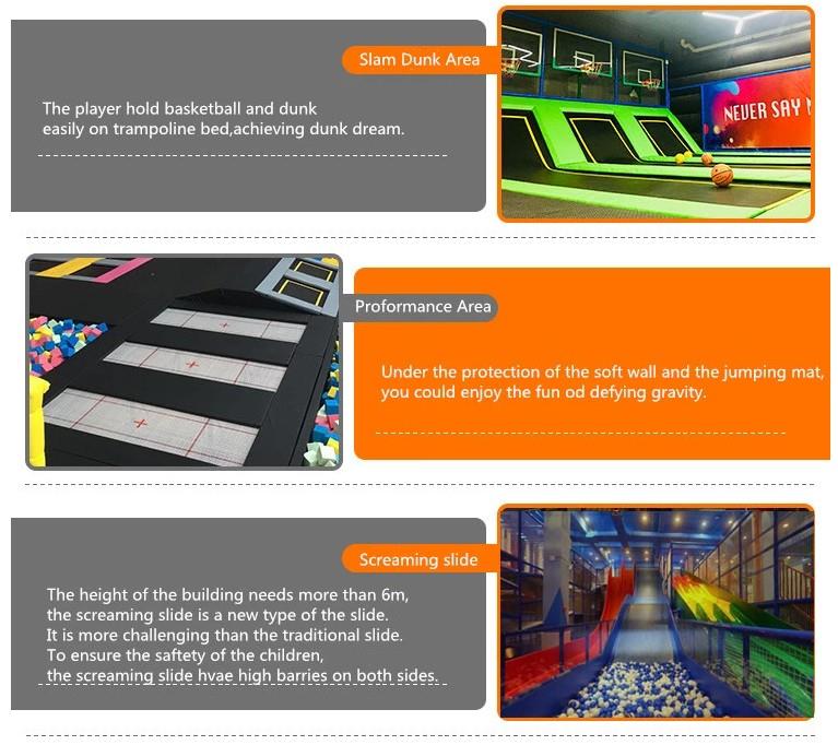 Небольшой закрытый батут - отличный выбор для сбора друзей, развлечений и занятий спортом, поскольку он подходит для всех возрастов. Он предназначен для поощрения людей прыгать и становиться более здоровыми. Он состоит из нескольких мини-традиционных батутов. Так что принять больше людей, чтобы играть на нем одновременно. И вы можете поместить много игр в небольшой внутренний батут , такой как Slam Dunk, Foam Pit, Dodge Ball, Air Bag, Olympic Trampoline и т. Д. В наш дизайн постепенно добавляются самые новые и популярные игры.